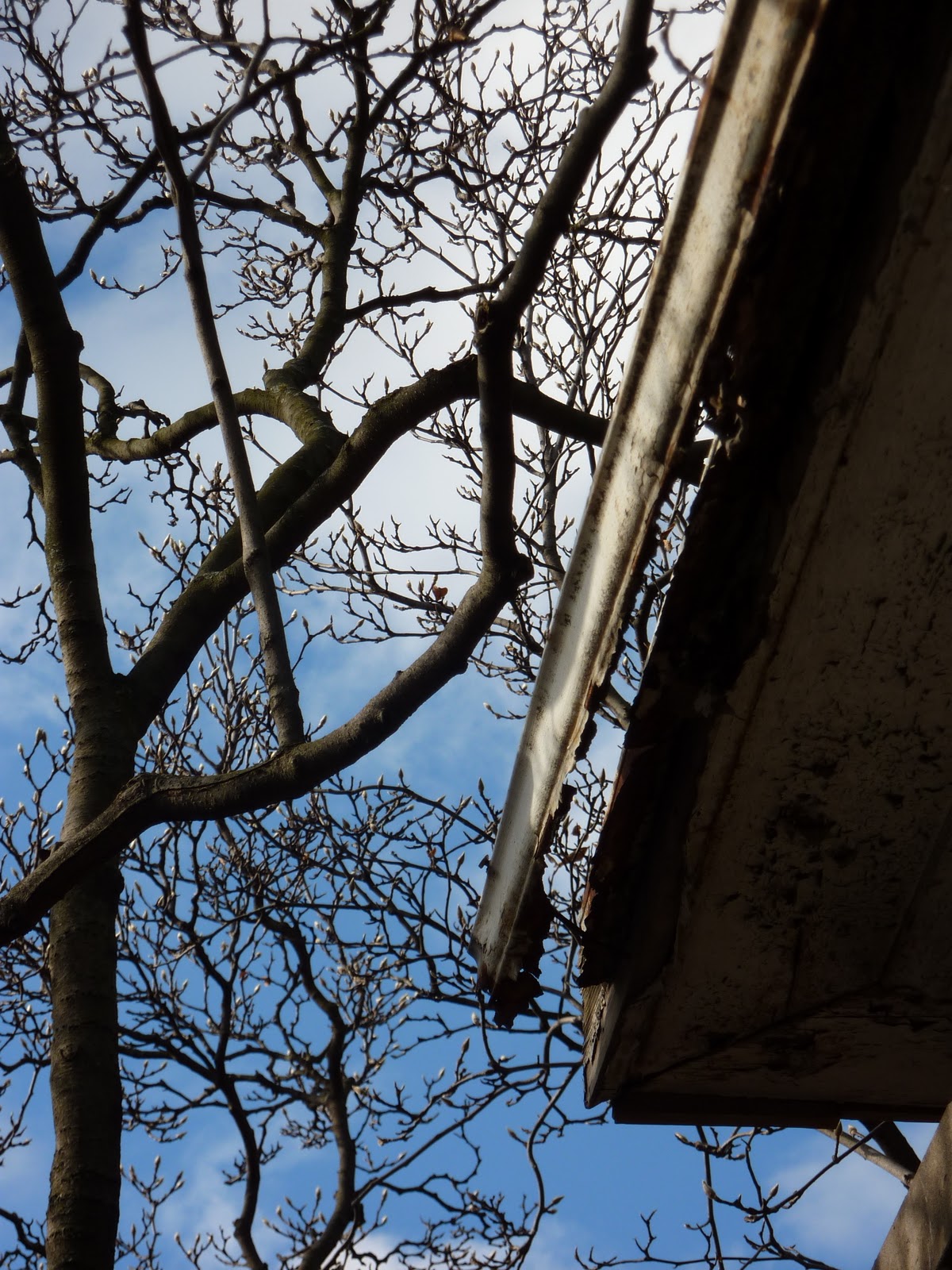 The first picture is of the house next door, the second is what used to be the gutters on the house, the third the walls up to the attic and the fourth the basement window,